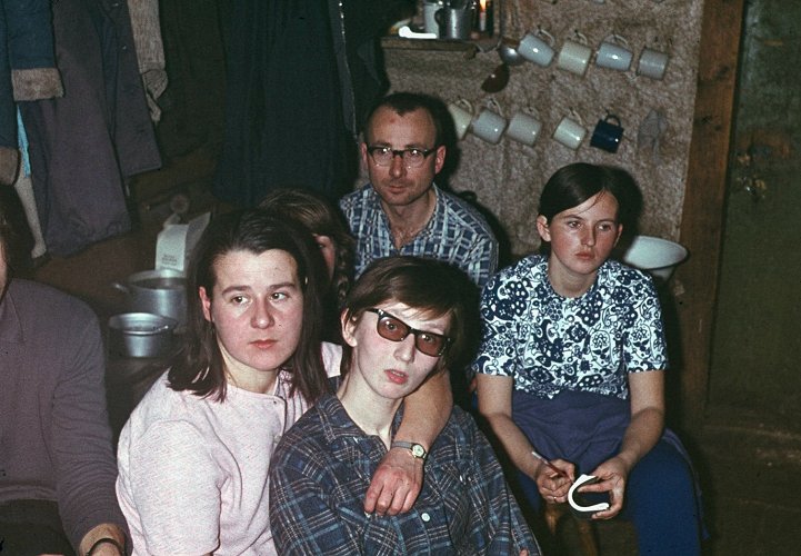 ![]() Grudzień'71. Od dołu - Basia, Ewa i dwa ktosie. Pewnie mieszkańcy szałasu Rusina. |