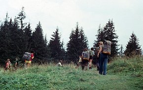 ![]() Sierpień'75. Na Słowację. Z lewej Ja¶ Czaja, w ¶rodku - ?, pod k±tem 45° Ira Lulek. |