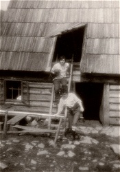 ![]() Wrzesień´75. Piłujemy drewno na opał (z Marysią Strakulską, Tytusem i nieznajomym ktosiem). |