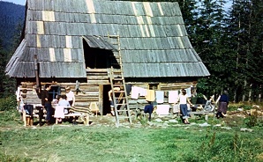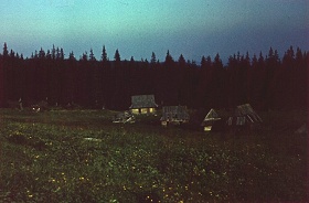 ![]() Lipiec'73. Szałasy na Waksmundzkiej. Mój romans z Tatrami zaczęłam na Waksmundzkiej rok wcześniej. Jak wielu z nas, pierwszy raz w Tatry przyjechałam z grupą studentów z księdzem Henrykiem z Poznania. Mieszkaliśmy w tym najnowszym szałasie nad potokiem (pierwszy z lewej). |