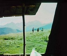 ![]() Wrzesień´75. Okno na świat - zdjęcie prześwietlone, bo za duży kontrast. Te trzy postacie ruszają na szlak, a ja prawdopodobnie się dopiero wygrzebałam ze śpiwora. |