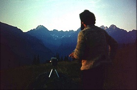 ![]() Wrzesień´75. Jaś Legutko, wyposażony w aparat, statyw i światłomierz czeka na wschód słońca. |