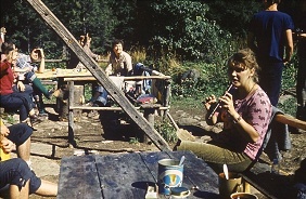 ![]() Wrzesień´75. Rozmowy przed szałasem Jacek z Wrocławia (?), tyłem Piotr z Warszawy i Pecol. |